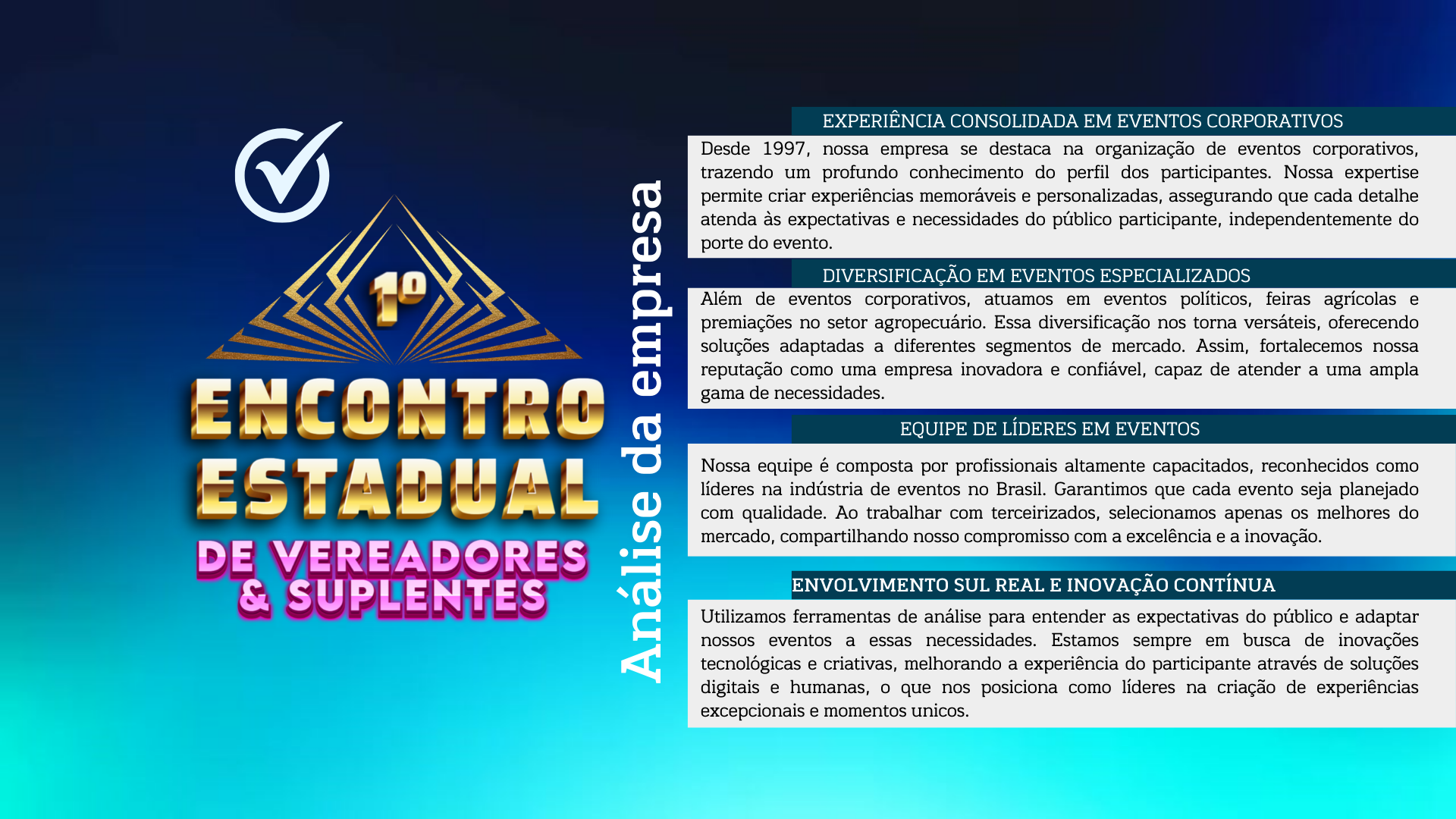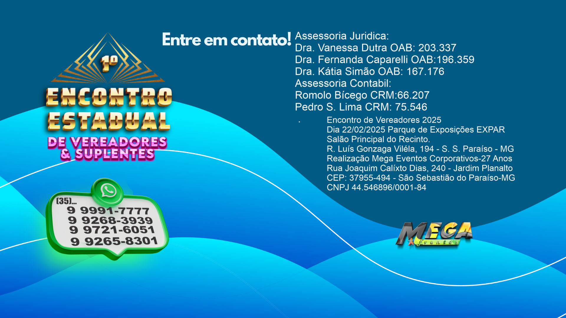 A Mega Eventos Corporativos transformou nossas ideias em realidade. O treinamento foi excepcional e muito enriquecedor para todos os vereadores participantes. Recomendo a todos!